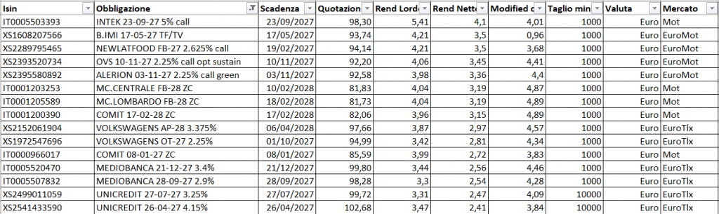 Il rendimento della nuova obbligazione tende ad essere superiore a quelle già quotate.