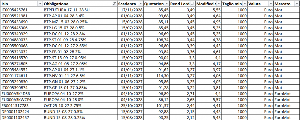 Se desideri imparare a selezione le obbligazioni in modo da essere autonomo nella costruzione e nella gestione di un portafoglio obbligazionario, ti segnalo il mio nuovo corso “INVESTIRE CON LE OBBLIGAZIONI” che si svolgerà online, al giovedì sera ed inizierà a marzo.